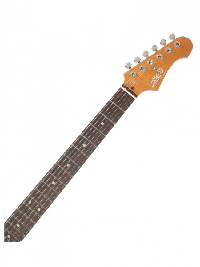 - Model JS-400 HT BK H to gitara elektryczna o solidnej konstrukcji i nowoczesnym wykończeniu. Jej korpus wykonany jest z palonej topoli, co nadaje jej wyjątkowy wygląd oraz zapewnia odpowiednią rezonansowość i lekkość. Gryf z kanadyjskiego palonego klonu oferuje wygodę gry, a profil Modern "C" sprawia, że gitara doskonale leży w ręce, ułatwiając szybkie i precyzyjne przeskakiwanie po progach.