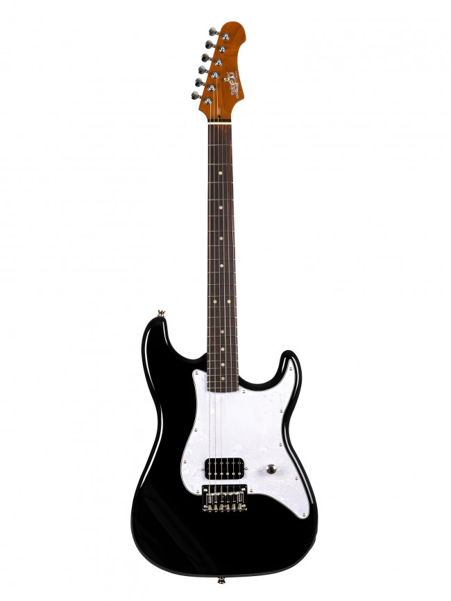 Gitara JET JS-400 HT BK H ma wykończenie w kolorze czarnym (Black), co nadaje jej elegancki i nowoczesny wygląd.