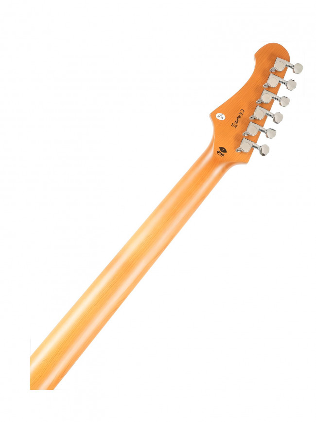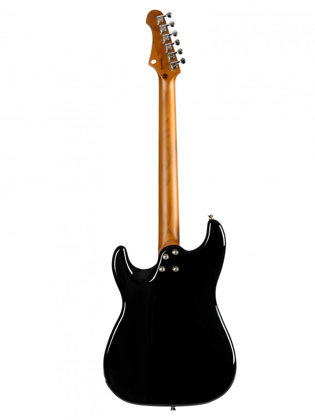 Korpus gitary JET JS-400 HT BK H wykonany jest z olchy, co zapewnia lekkość oraz jasne, zrównoważone brzmienie.