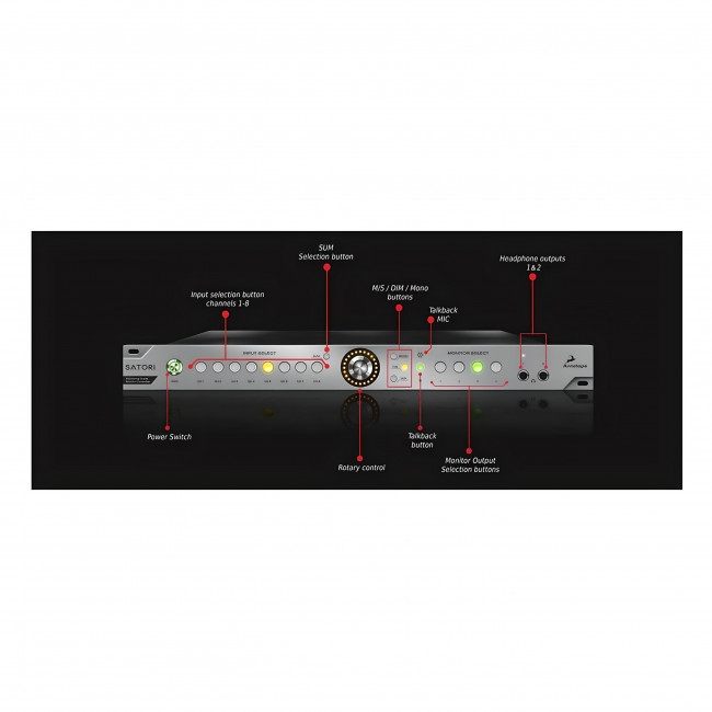 Urządzenie obsługuje osiem wejść stereo, cztery wyjścia stereo oraz dodatkowe wyjście na subwoofer. Dzięki połączeniom XLR, TRS i DSub25, Satori pasuje do każdego profesjonalnego studia. Panel sterujący R4S dodatkowo rozszerza możliwości kontrolne, oferując łatwe przełączanie między wejściami, grupami monitorów i trybami pracy.