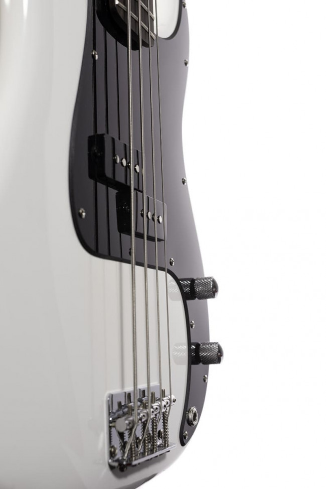 Impressive finish, recognizable design and great sound for its price range - these are just some of the arguments for choosing Arrow Session Bass 4 for your first bass!Careful executionThe body is made of poplar, the neck is made of Canadian maple. The fingerboard is rosewood.The workmanship is at a high level, thanks to which the bass can be praised for a great impression in the field of sound quality. Among other things, more than the satisfactory resonance of the wood contributes to this.Efficient electronicsElectronics in this model works flawlessly; whether it's the cabling or the Precision Bass pickup system. As a result, the sound is clean, but not without the right edge.You also have two potentiometers at your disposal, easily accessible at any time in the game.For whom?It is an instrument for demanding beginners. If you do not want to start with the first better budget bass, but instead are looking for a cheaper alternative with the possibility of more expensive models… Choose the Arrow Session Bass!ARROW SESSION BASS 4 SNOW WHITE ROSEWOOD / BLACK TO:Shape: PBBody: poplarNeck: Canadian mapleFingerboard: RosewoodPickups: Precision Bass type circuitControl: 2 potentiometersFretboard Inlays: Dots - Kształt: PB