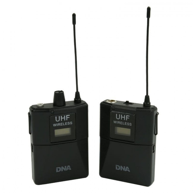 DNA CAMERA MIC to bezprzewodowy system nagłośnienia do kamery, aparatu fotograficznego, cyfrowej lustrzanki DSLR, telefonu, smartfona, a także tabletu, laptopa, komputera stacjonarnego lub innego urządzenia przetwarzającego dźwięk. W skład zestawu wchodzą przypaskowy nadajnik (beltpack), odbiornik, 2 przewody ze złączami jack stereo (TRS) 3,5 mm, 4 baterie AA 1,5V oraz solidna walizka. Sprzęt doskonale sprawdza się podczas różnego typu nagrań wideo, prowadzenia wywiadów, wykładów lub prezentacji przed kamerą.