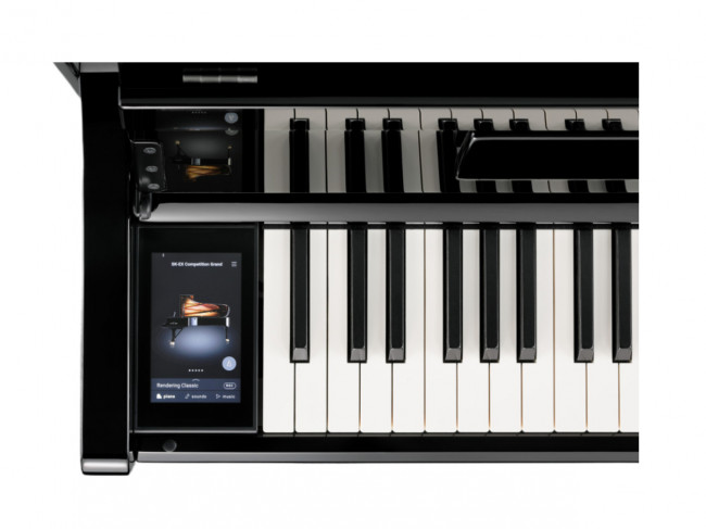 - Klawiatura: Grand Feel III z drewnianymi klawiszami, powierzchnia klawiszy z imitacją kości słoniowej i hebanu, trzypunktowy mechanizm wykrywania nacisku.