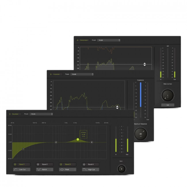 - Expander – redukcja szumów tła i zwiększenie klarowności nagrania.