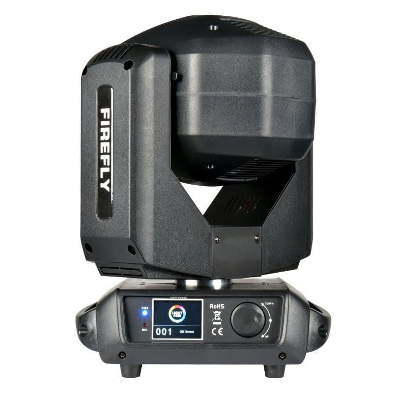 Komponenty reflektora zamknięte zostały w wytrzymałej obudowie wyposażonej w uchwyty umożliwiające przenoszenie oraz instalację sprzętu na rampach i kratownicach scenicznych. Ruchoma głowa dysponuje tarczą 14 kolorów oraz kołem gobo, na którym znajduje się 17 wzorów modelujących wiązkę, w tym 4 szklane, kolorowe kształty. Dodatkowo posiada obrotową pryzmę, która rozszczepia światło jednocześnie na 8, 16 i 24 wiązki tworząc w ten sposób ciekawy efekt rozety. FIREFLY oferuje również funkcję RDM (Remote Device Management) umożliwiającą zdalne zarządzanie jednostką. Jest ona bardzo przydatna w sytuacjach, gdy dostęp do reflektora jest utrudniony, a zachodzi konieczność zmiany ustawień, które normalnie wykonalibyśmy z poziomu menu (np. adresowania, ilości kanałów, itp.).