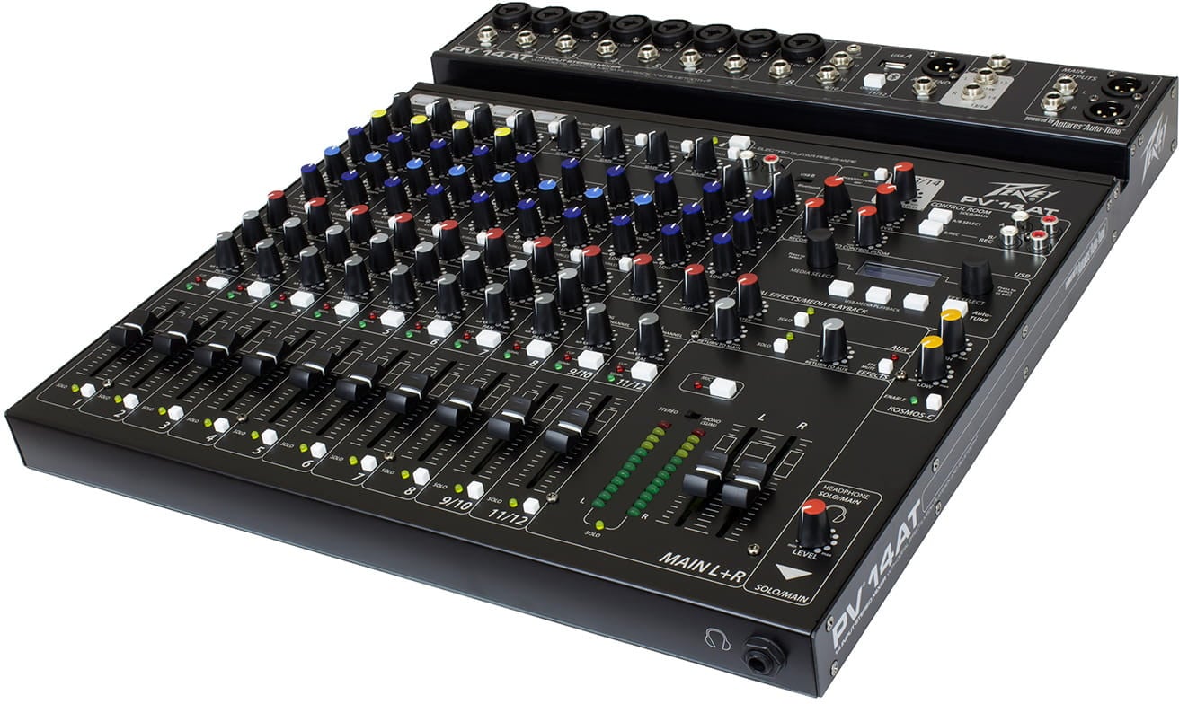 Nowa seria mikserów PV została wyposażona w referencyjne preampy mikrofonowe których wartość THD nie przekracza 0.0007%, co sprawia, że trafiają one automatycznie do pierwszej ligi mikserów scenicznych i studyjnych.Seria mikserów Peavey PV AT została wyposażona również w system Antares Auto Tune, czuwający nad poprawną intonacją. Technologia, pilnująca aby wokal był dobrze wystrojony jest używana w praktycznie wszystkich profesjonalnych nagraniach oraz występach na żywo. Jest to jednocześnie funkcjonalność wbudowana w miksery z serii PV AT, która monitoruje perfekcyjny strój wokali podczas występu.Mikser oferuje interfejs Bluetooth audio dla urządzeń mobilnych, funkcję Direct Out dla każdego kanału (umożliwia nagrywanie wielośladowe za pomocą interfejsu audio) oraz opcję wysyłki strumienia audio prosto do komputera PC. Wbudowany odtwarzacz MP3 z wyświetlaczem LCD pozwala na podłączenie telefonu do miksera poprzez USB. Niskoprofilowana obudowa miksera doskonale wpisuje się w koncepcję małych i średnich eventów.Kluczowe cechy:- 4 kanały z systemem Antares Auto tune