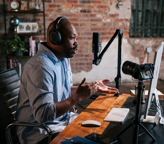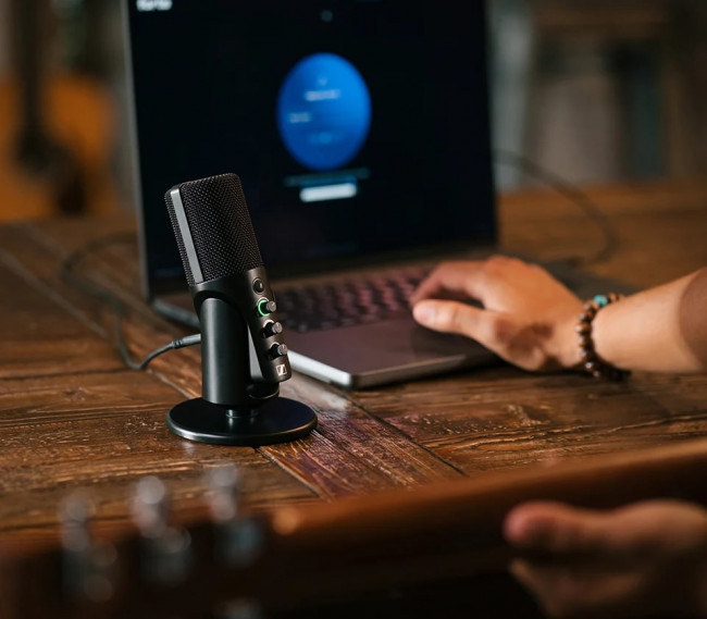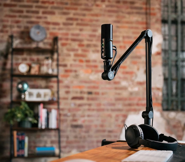 Najnowszy mikrofon USB-C ze statywem stołowym do podcastingu i streamingu.