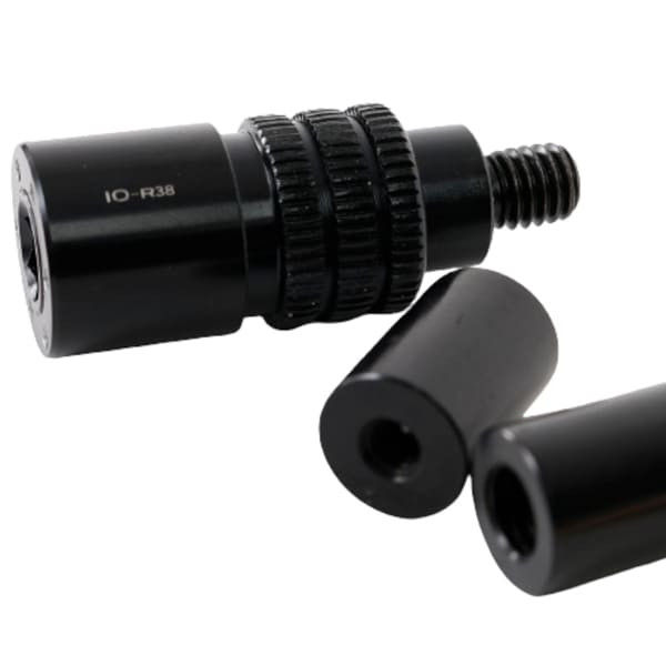 IO-R38 to szybkozłączka od Triad-Orbit z gwintem męskim 3/8″ z jednej strony i żeńskim złączem IO z drugiej storny. IO-R38 jest zaprojektowany w celu poszerzenia opcji montażowych listew IO-Vector, płyt IO-Desk i zacisków IO-C.