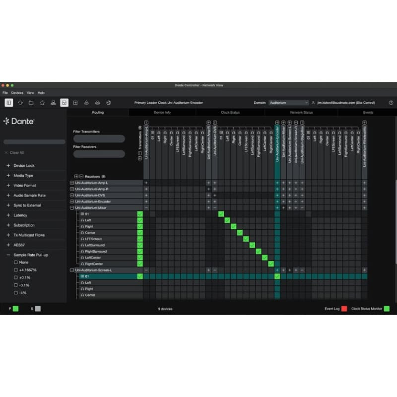 - Pełna kompatybilność z oprogramowaniem Dante Controller i Domain Manager